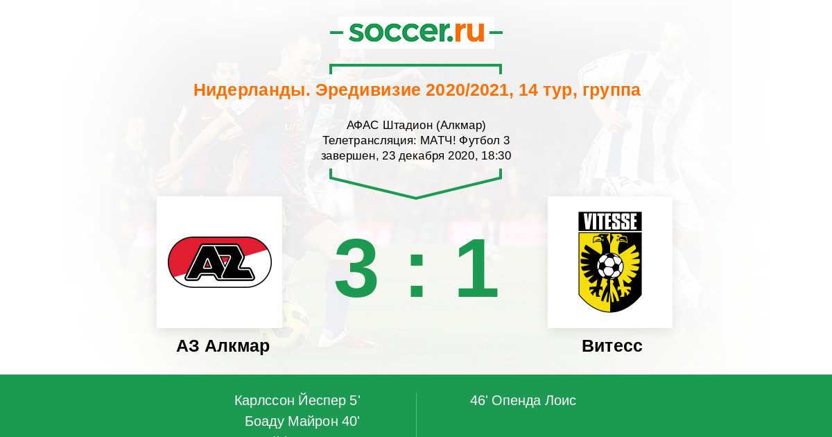 Протокол матча АЗ Алкмар против Витесс