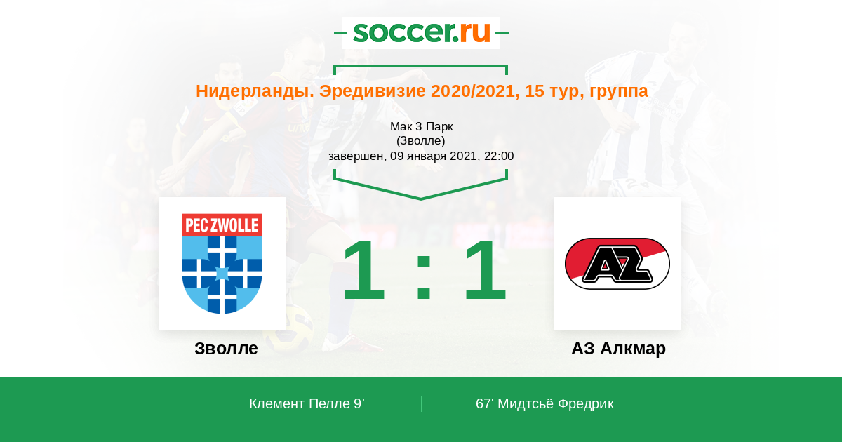 Протокол матча Зволле против АЗ Алкмар