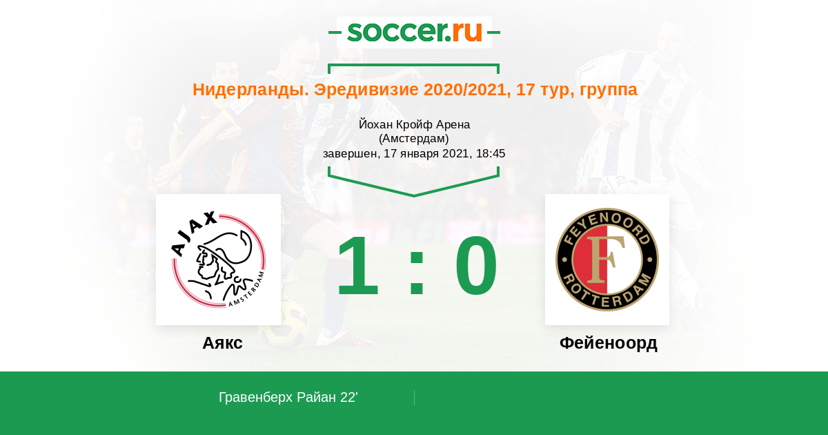 "Аякс" к еще одному классическому противостоянию подходит с прежними кадровыми потерями. Вингер Давид Нерес, а также юные нападающие Брайан Бробби и Лассина Траоре выбыли еще в концовке прошлого года. Под вопросом участие в матче молодого защитника Тимбера, получившего повреждение в игре с "Твенте". Зато ожидается возвращение в заявку ганского хавбека Мохаммеда Кудуса. У "Фейеноорда" уже несколько месяцев вне игры вратарь Джастин Бейлов, вингер Кристиан Конте и талантливый словацкий центрфорвард Роберт Боженик. Плюс, незадолго до зимней паузы травмировался креативный полузащитник Жоау Тейшейра. "Аякс" неизменно обыгрывал "Фейеноорд" в пяти последних домашних матчах. Не сказал бы, что "Евреи" нынче находятся в отличной форме и должны без проблем добывать шестую кряду победу в Амстердаме над принципиальным соперником, но команда тен Хага все же не просто так считается фаворитом Де Классикер. "Тараканы" умеют обороняться (роттердамцы имеют лучший показатель в лиге по пропущенным мячам), но выстоять под натиском лучшей атаки Эредивизи им вряд ли удастся. Полагаю, что матч порадует высокой результативностью, ну и ставлю на победу "Аякса" в один-два мяча.