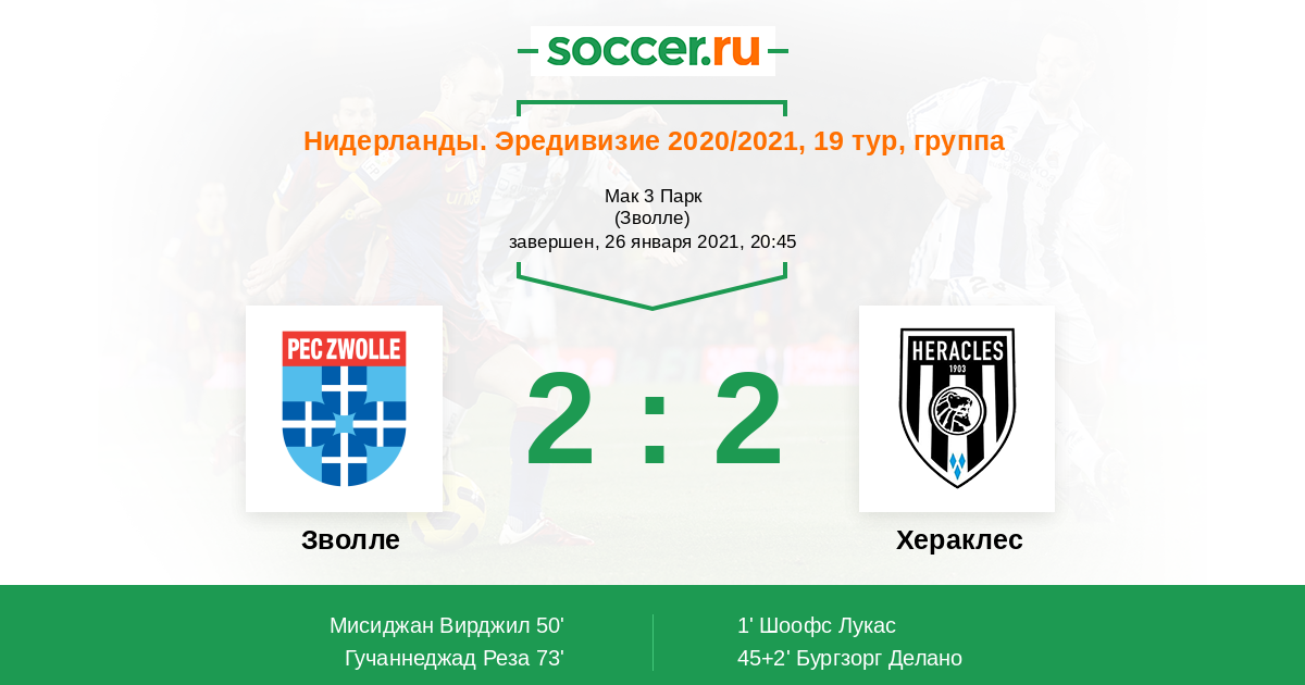 Протокол матча Зволле против Хераклес