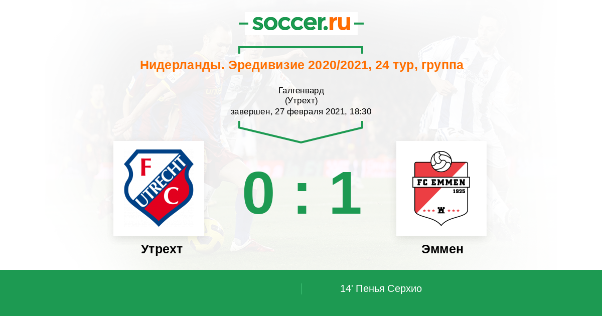 Протокол матча Утрехт против Эммен