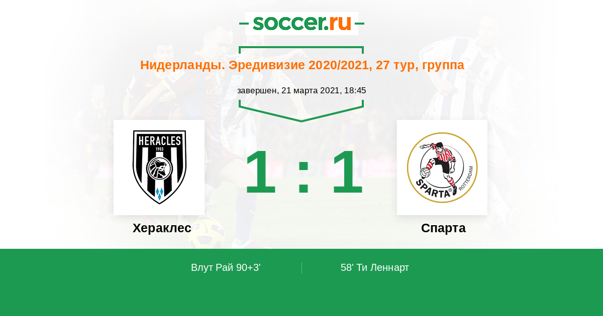 Протокол матча Хераклес против Спарта