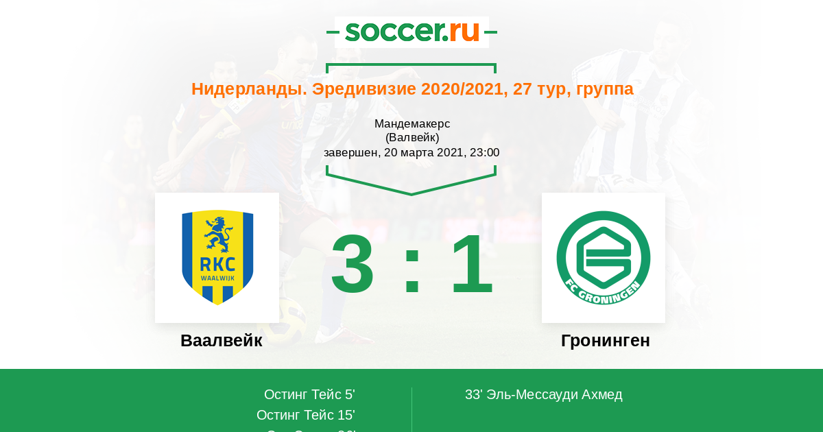 Протокол матча Ваалвейк против Гронинген