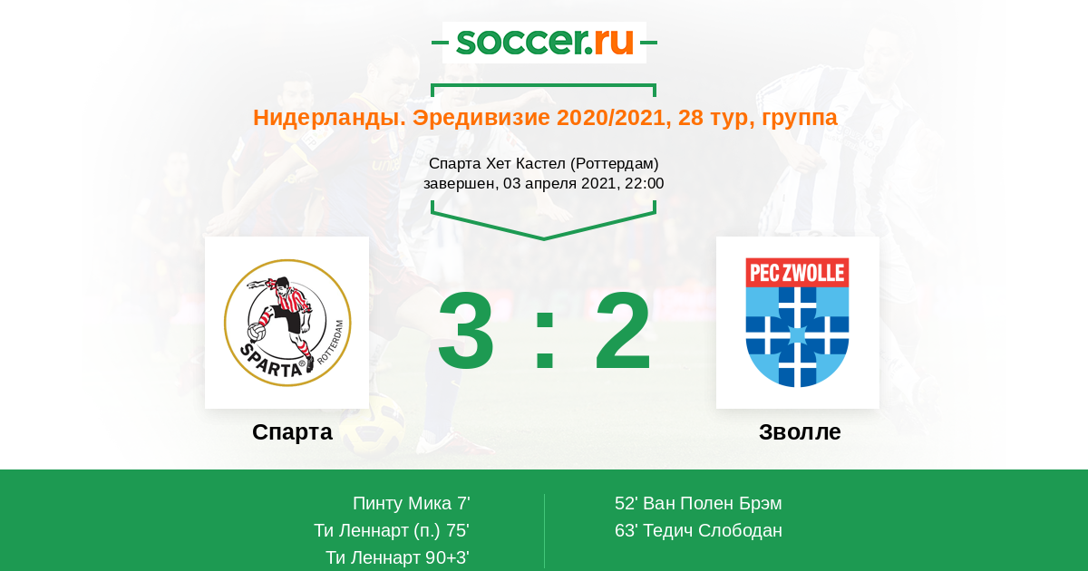 Протокол матча Спарта против Зволле