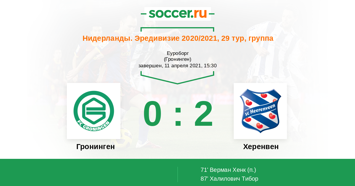 Протокол матча Гронинген против Херенвен