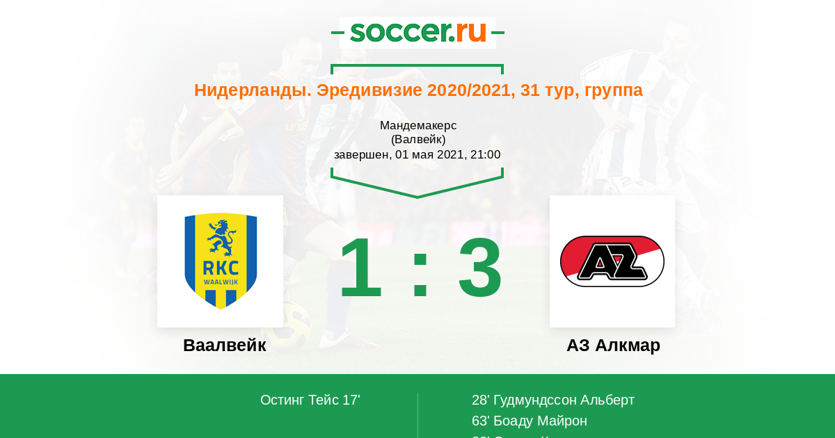 Протокол матча Ваалвейк против АЗ Алкмар