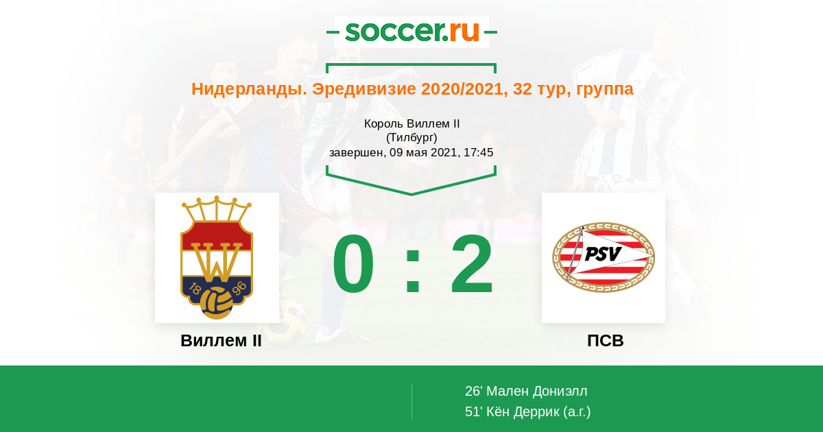Протокол матча Виллем II против ПСВ