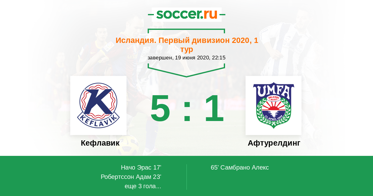 Протокол матча Кефлавик против Афтурелдинг