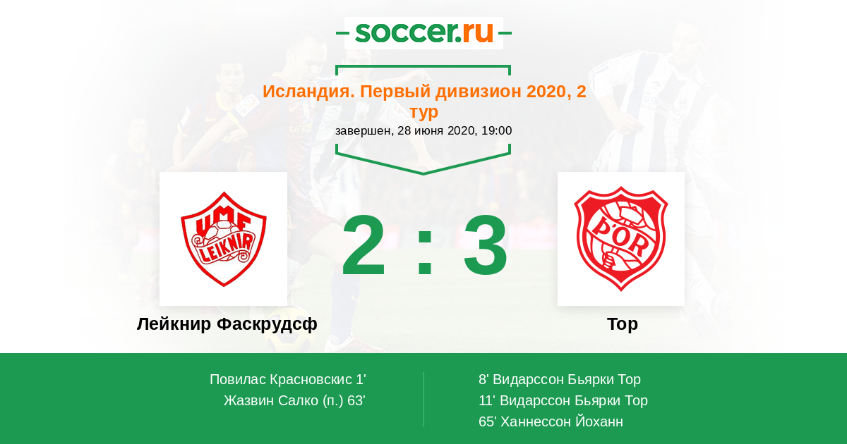 Протокол матча Лейкнир Фаскрудсф против Тор