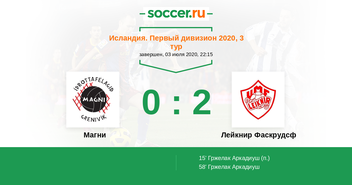 Протокол матча Магни против Лейкнир Фаскрудсф