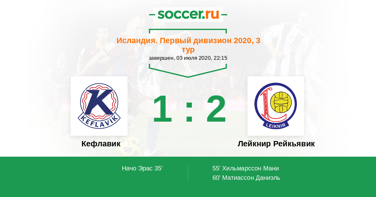 Протокол матча Кефлавик против Лейкнир Рейкьявик
