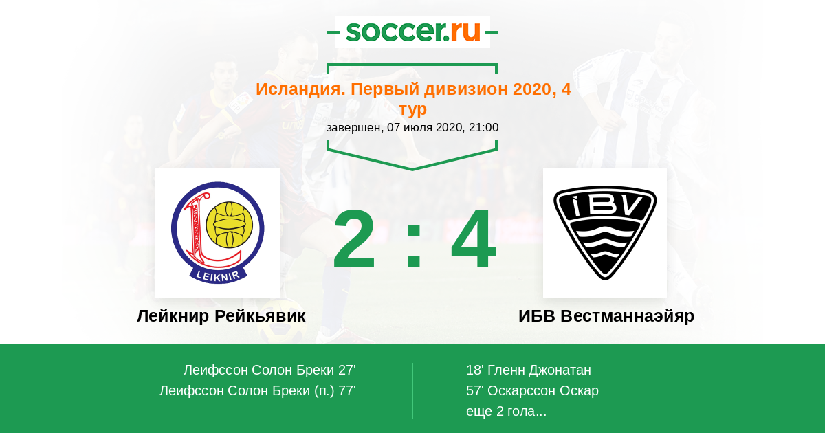Протокол матча Лейкнир Рейкьявик против ИБВ Вестманнаэйяр