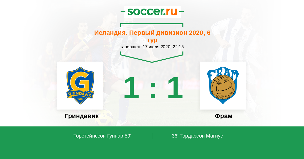 Протокол матча Гриндавик против Фрам