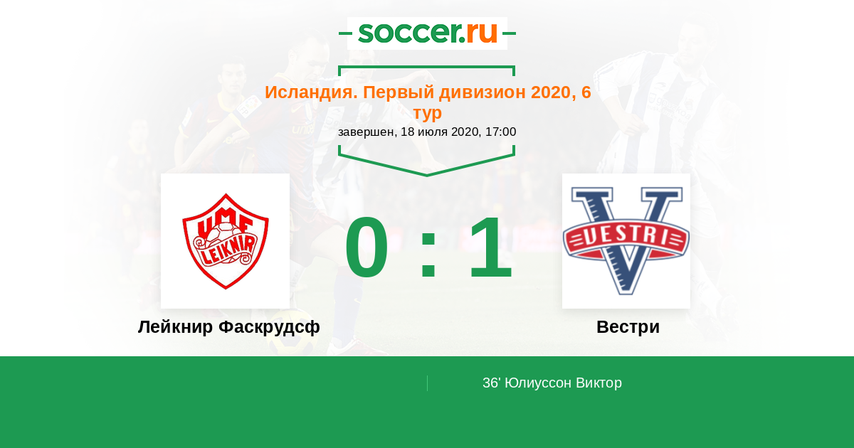 Протокол матча Лейкнир Фаскрудсф против Вестри