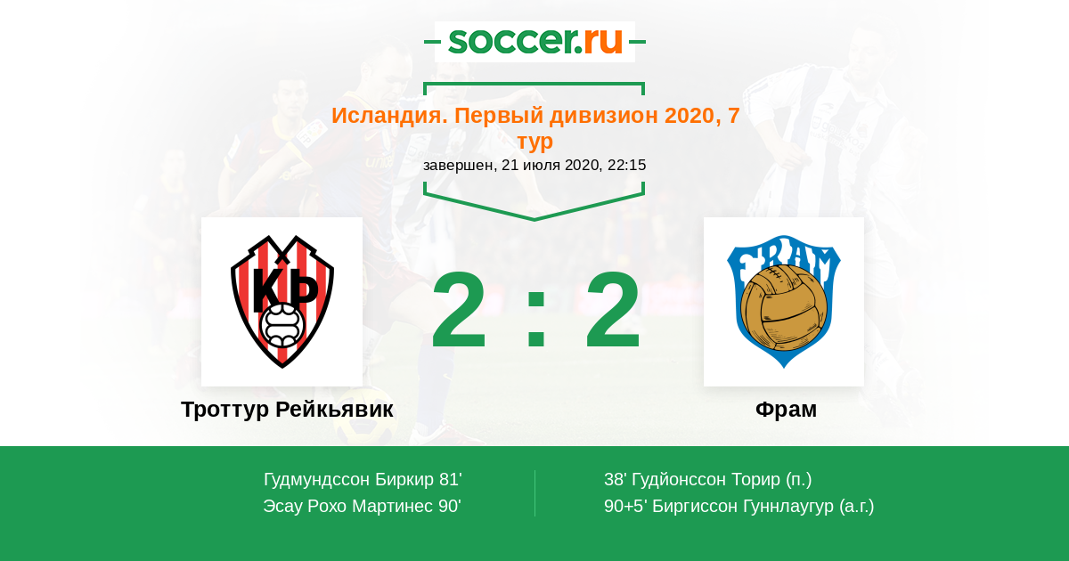 90+5' (2:2) Автогол Биргиссон Гуннлаугур