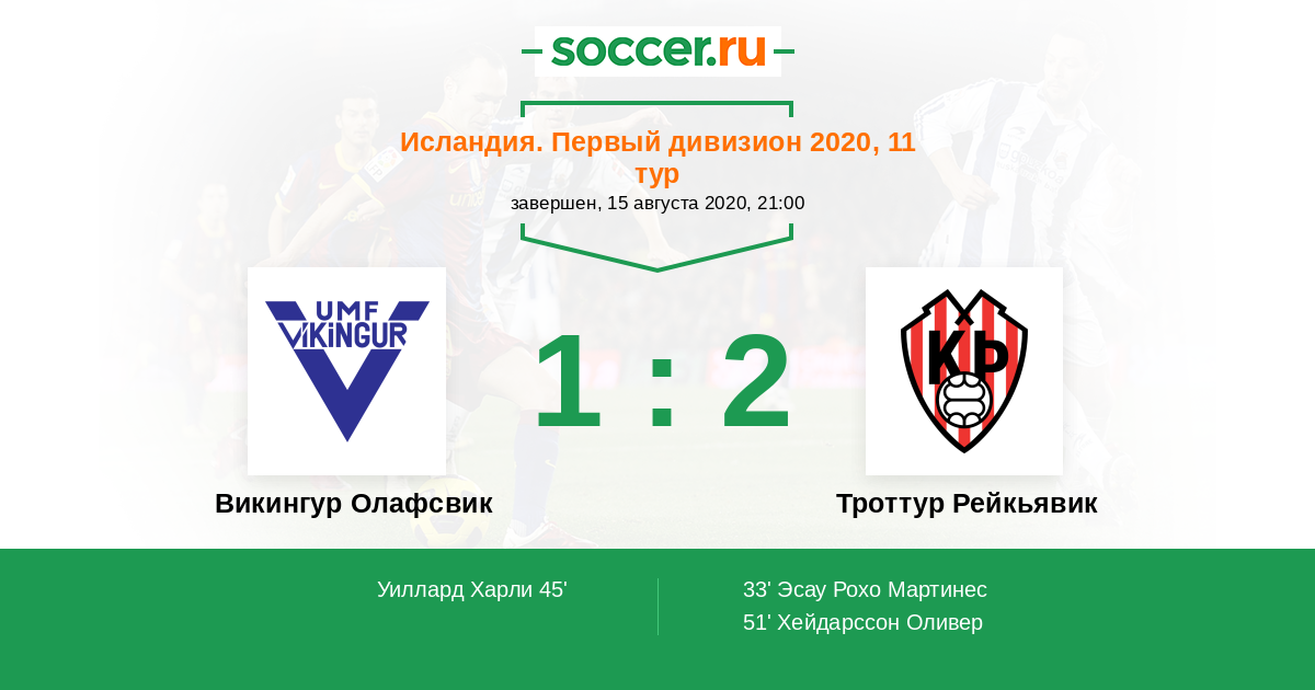 Протокол матча Викингур Олафсвик против Троттур Рейкьявик