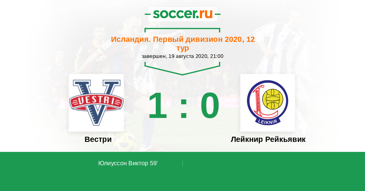 Протокол матча Вестри против Лейкнир Рейкьявик