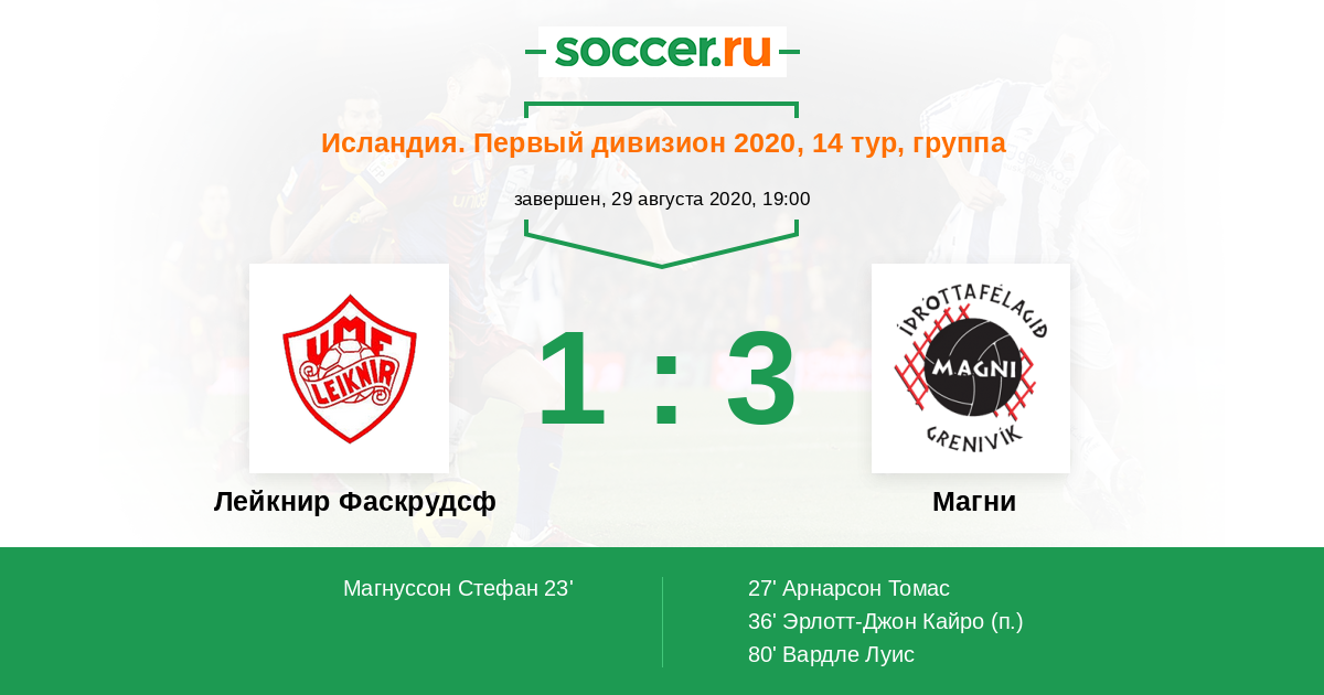 Протокол матча Лейкнир Фаскрудсф против Магни