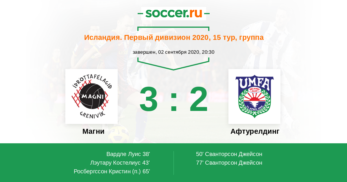 Протокол матча Магни против Афтурелдинг