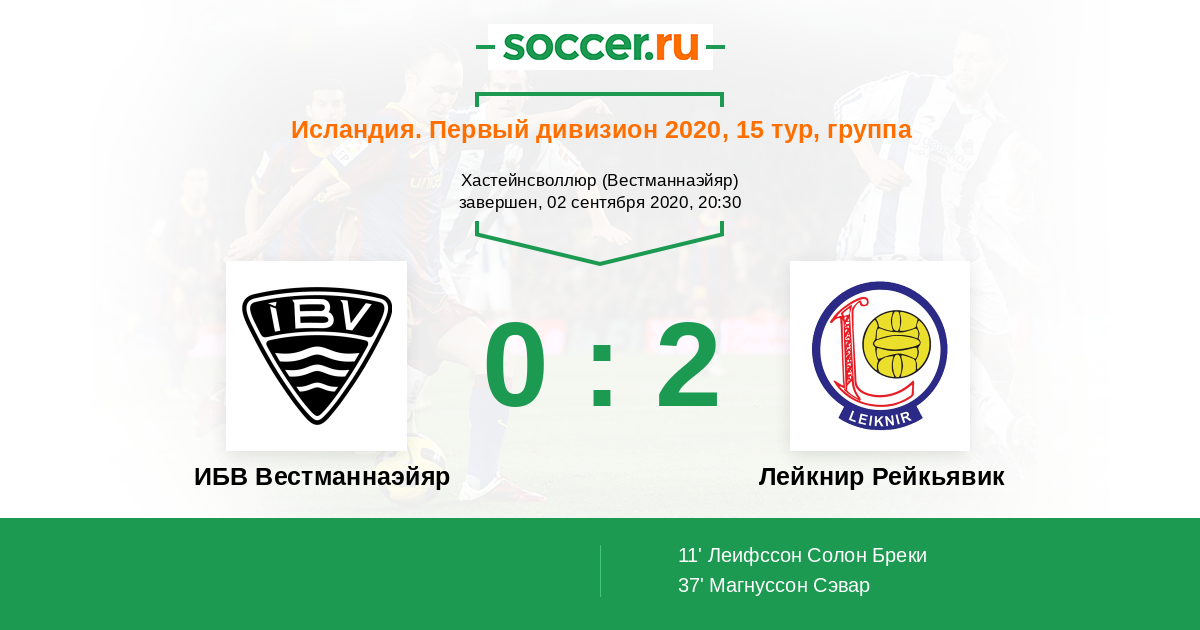 Протокол матча ИБВ Вестманнаэйяр против Лейкнир Рейкьявик
