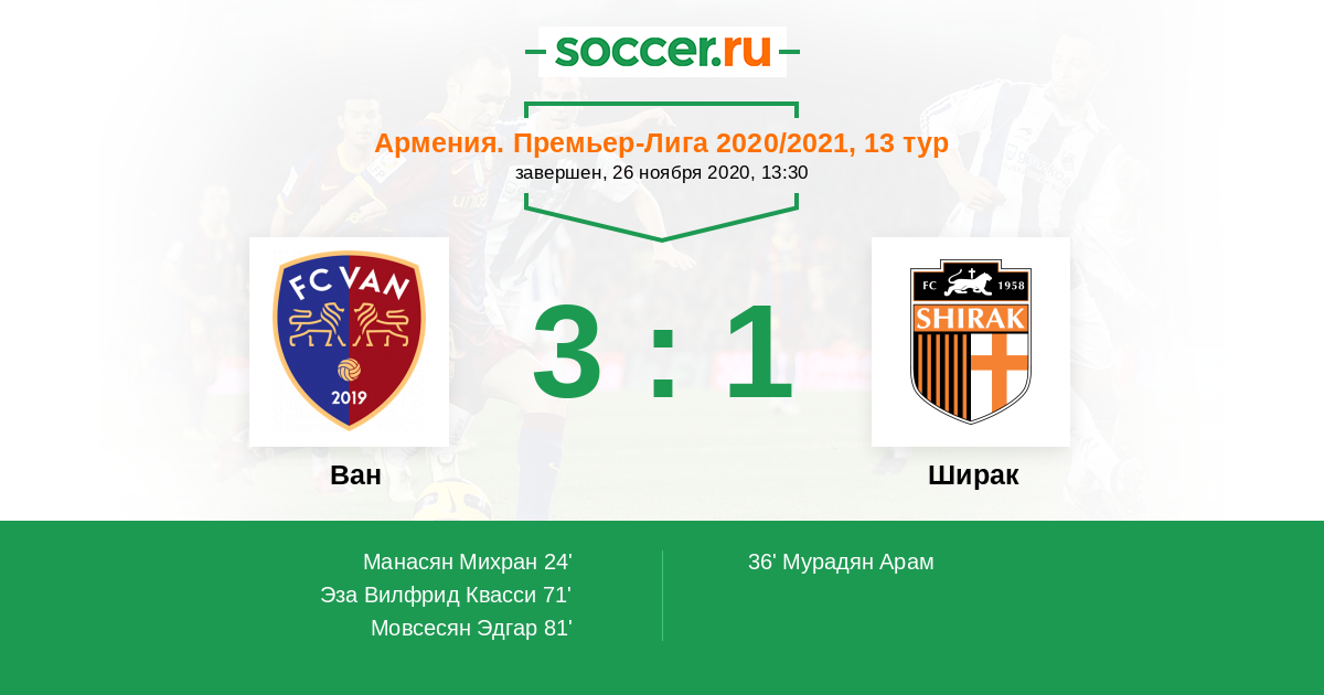 Протокол матча Ван против Ширак
