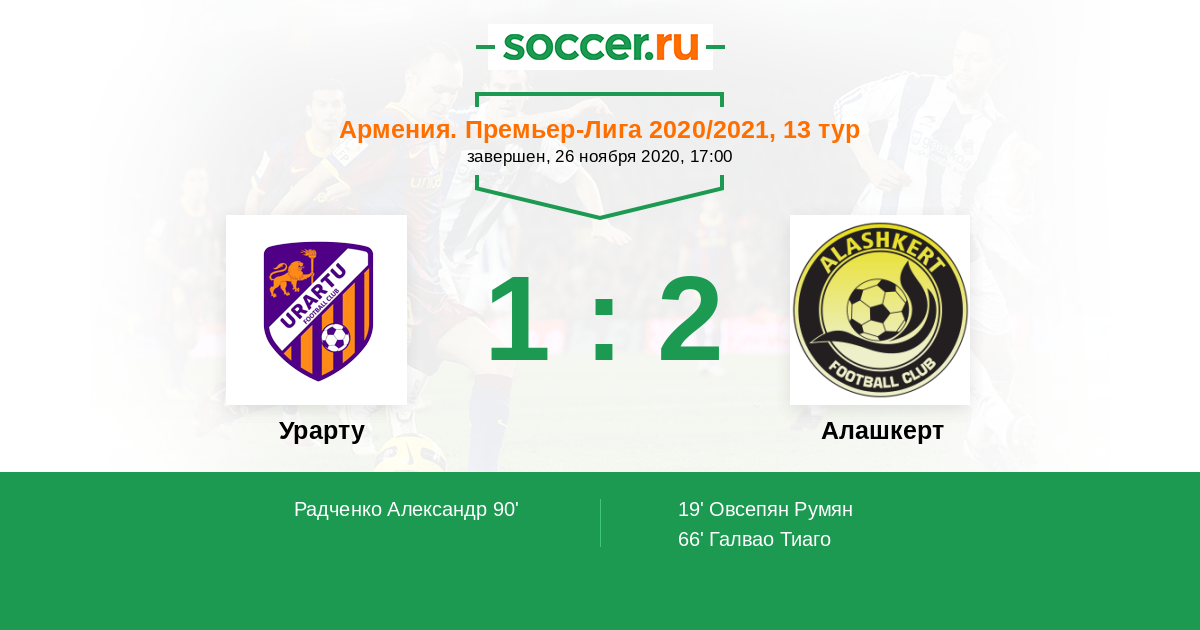 Протокол матча Урарту против Алашкерт