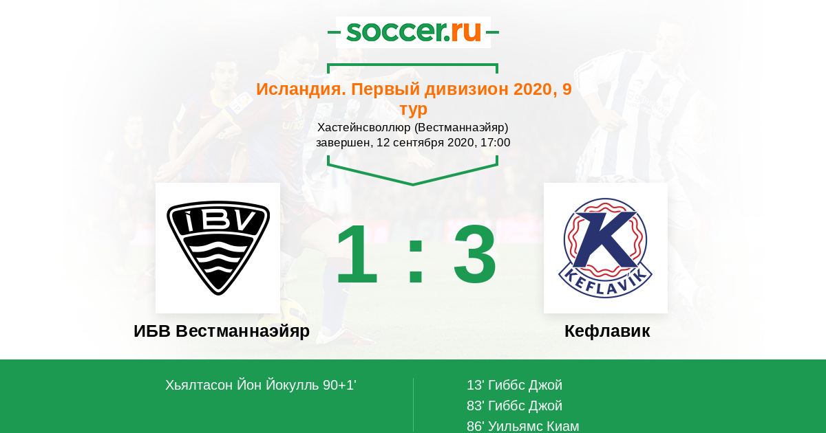 Протокол матча ИБВ Вестманнаэйяр против Кефлавик
