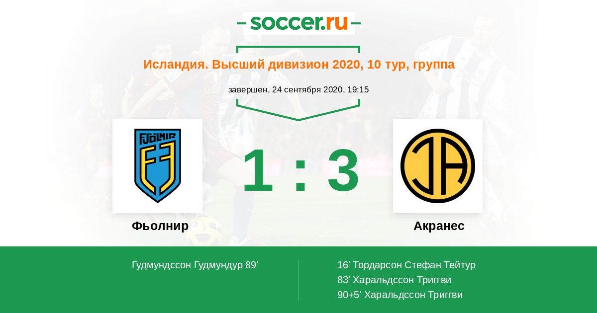 Протокол матча Фьолнир против Акранес