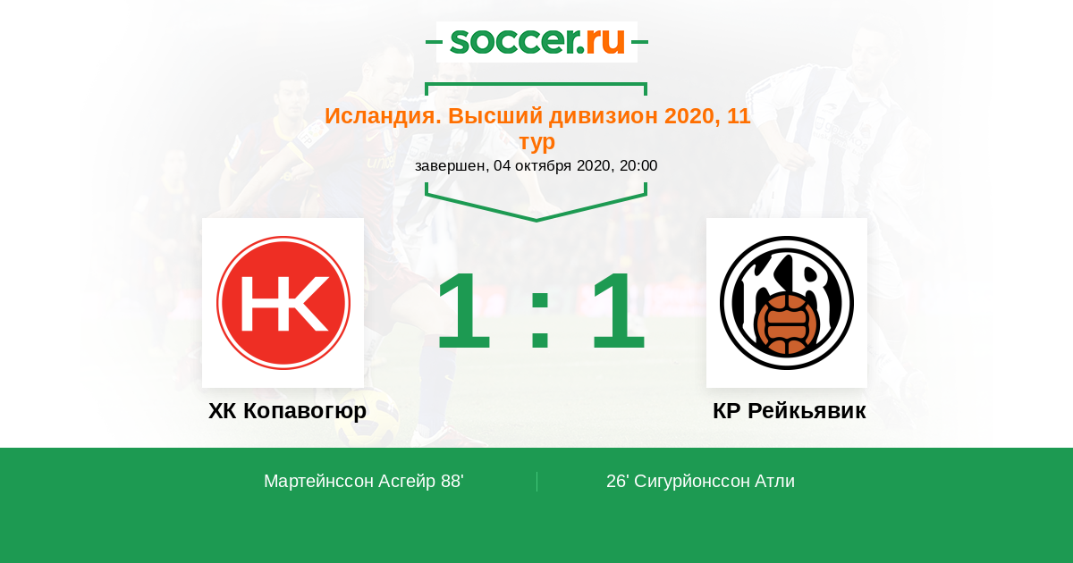 Протокол матча ХК Копавогюр против КР Рейкьявик