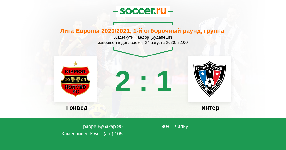 Протокол матча Гонвед против Интер