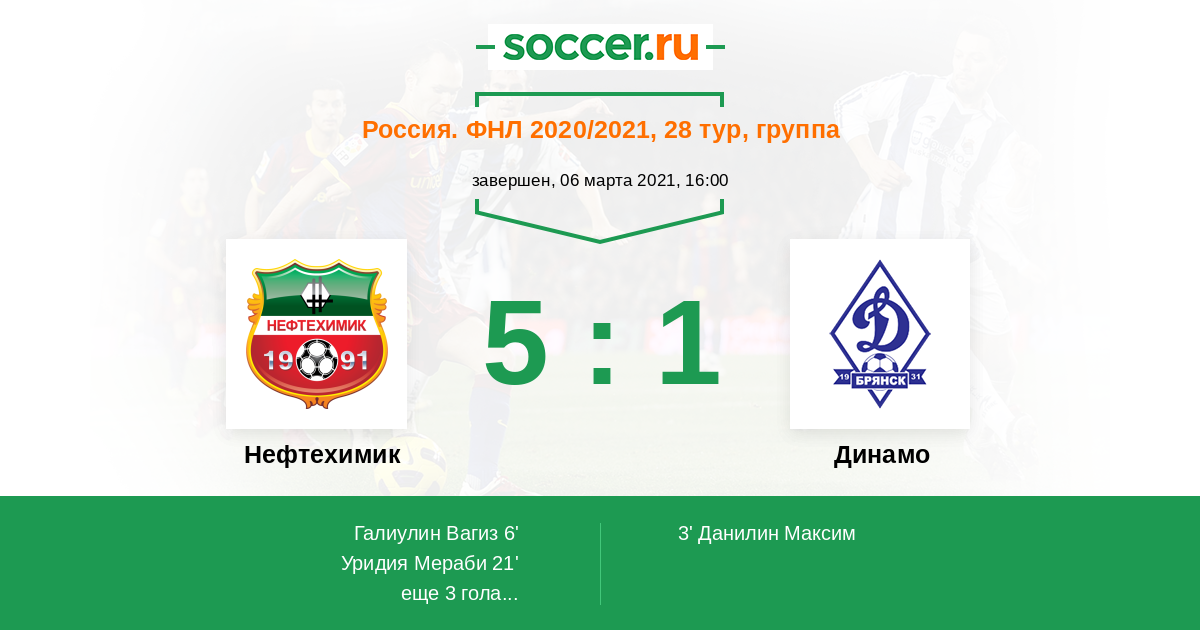 Протокол матча Нефтехимик против Динамо Брянск