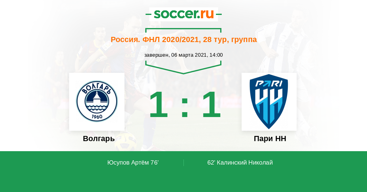 Протокол матча Волгарь против Пари НН