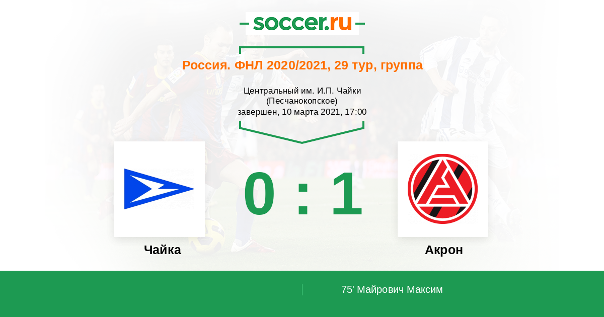 Протокол матча Чайка против Акрон