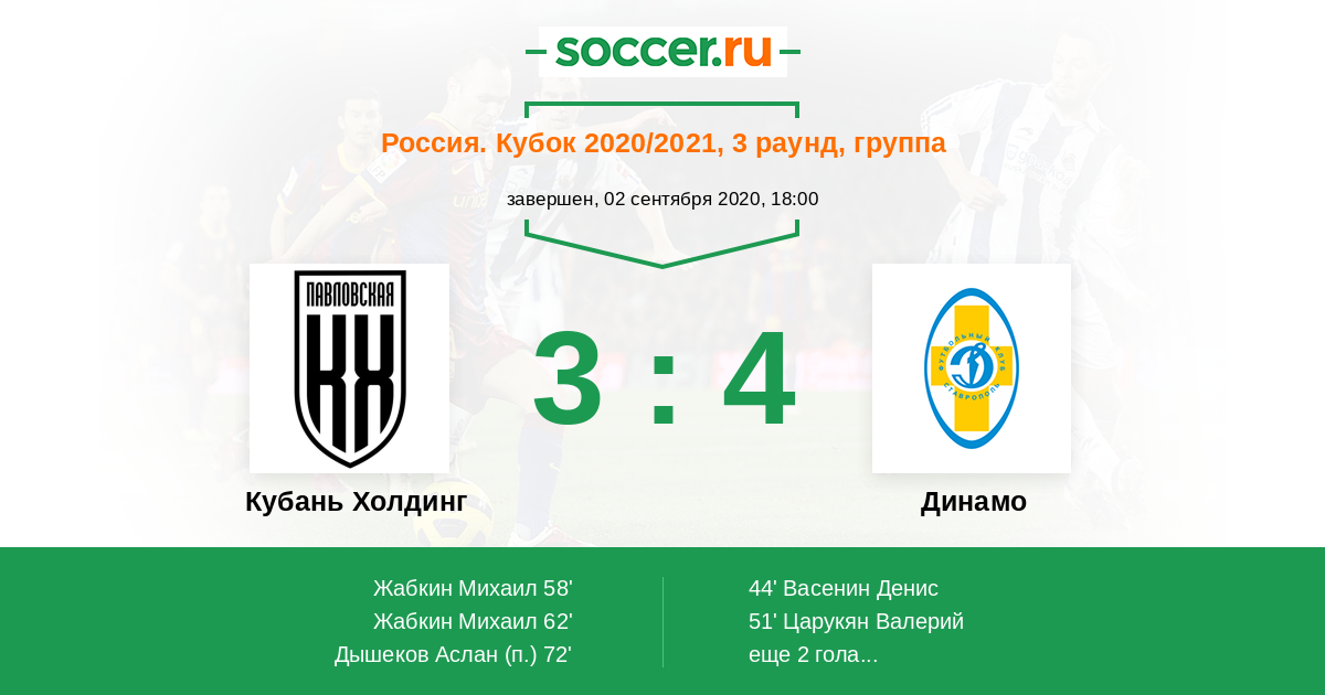 Протокол матча Кубань Холдинг против Динамо Ставрополь