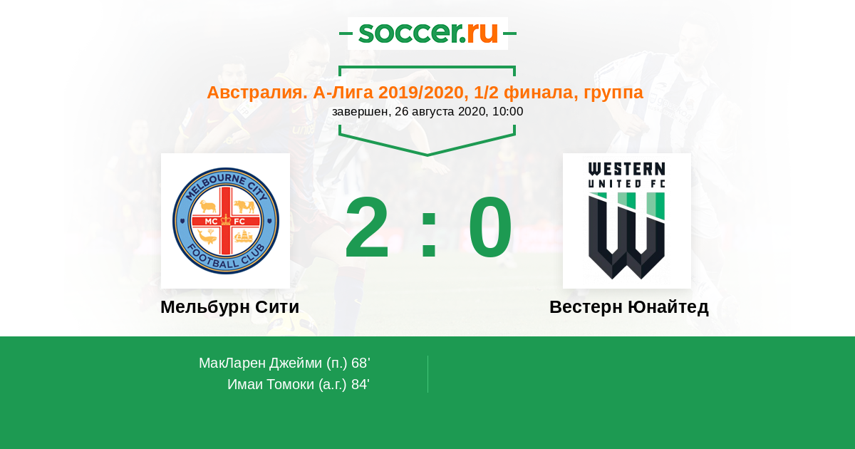 Протокол матча Мельбурн Сити против Вестерн Юнайтед
