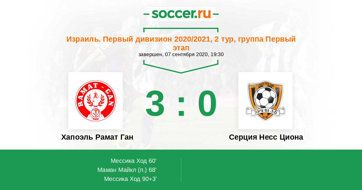 Протокол матча Хапоэль Рамат Ган против Серция Несс Циона