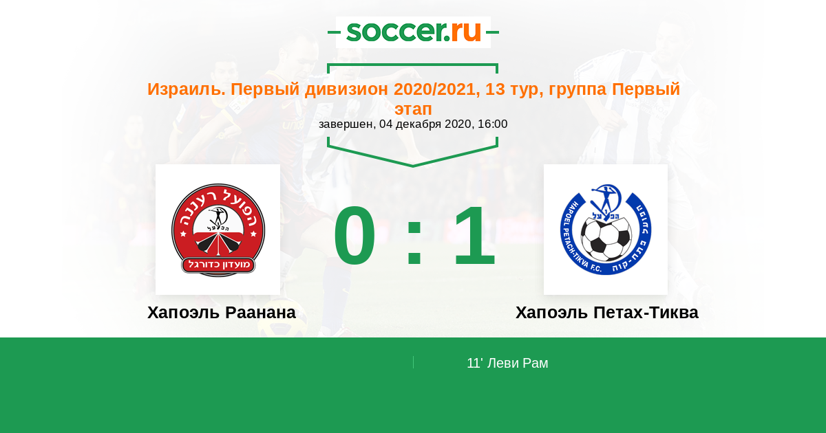 Протокол матча Хапоэль Раанана против Хапоэль Петах-Тиква