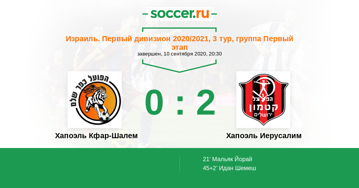 Протокол матча Хапоэль Кфар-Шалем против Хапоэль Иерусалим