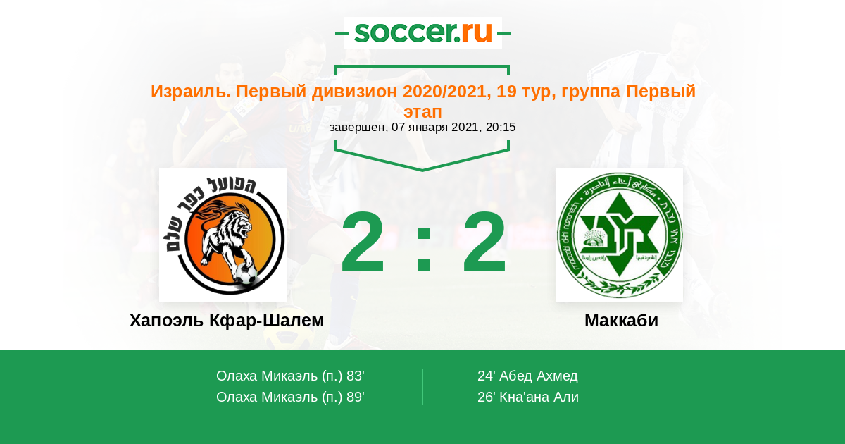 Протокол матча Хапоэль Кфар-Шалем против Маккаби