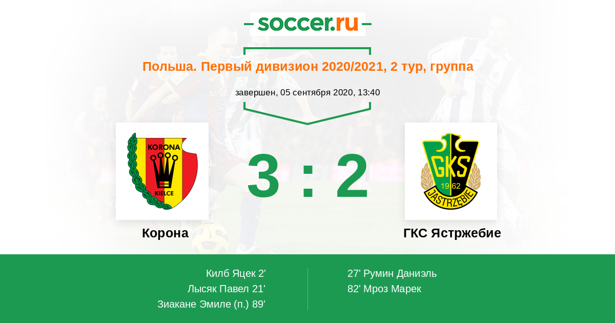 Протокол матча Корона против ГКС Ястржебие