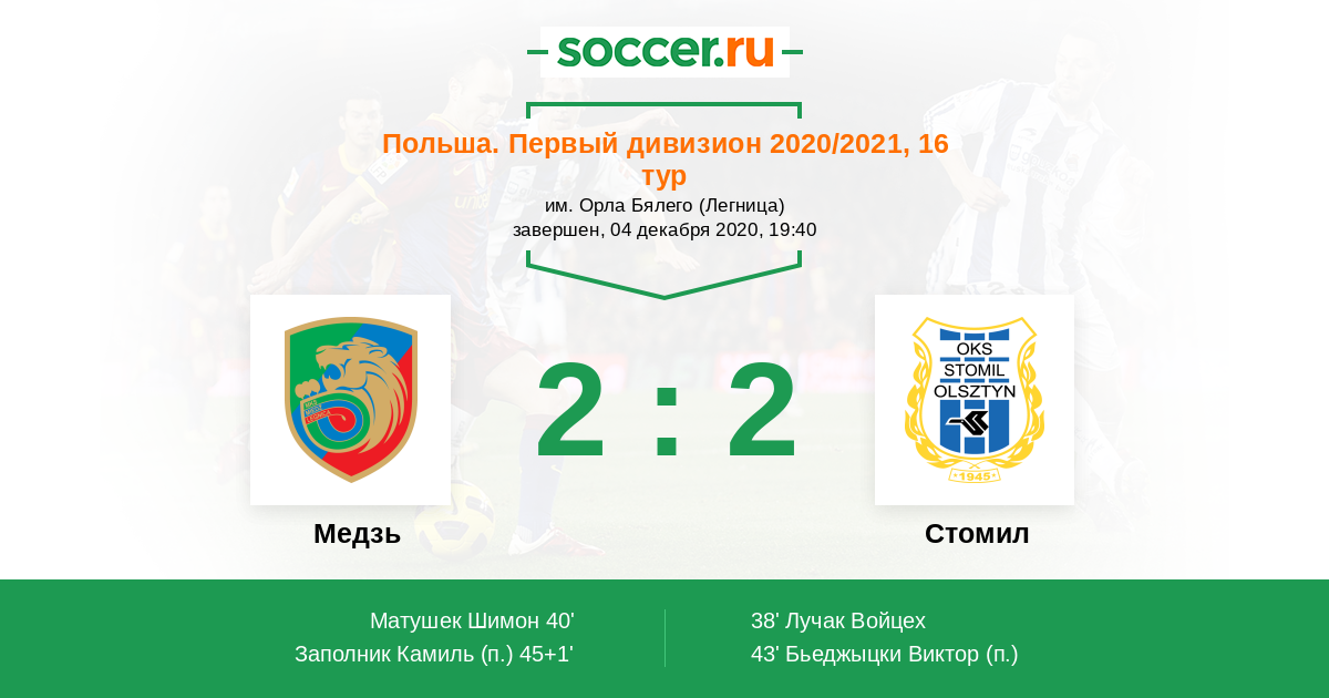 Протокол матча Медзь против Стомил