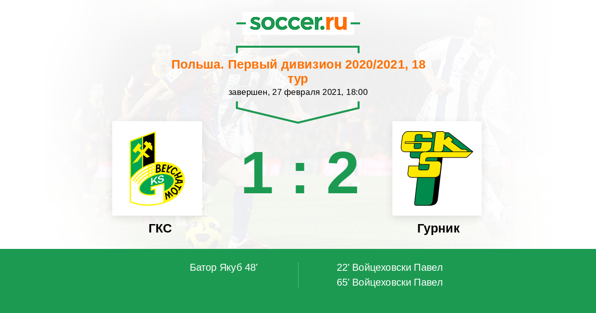 Протокол матча ГКС против Гурник