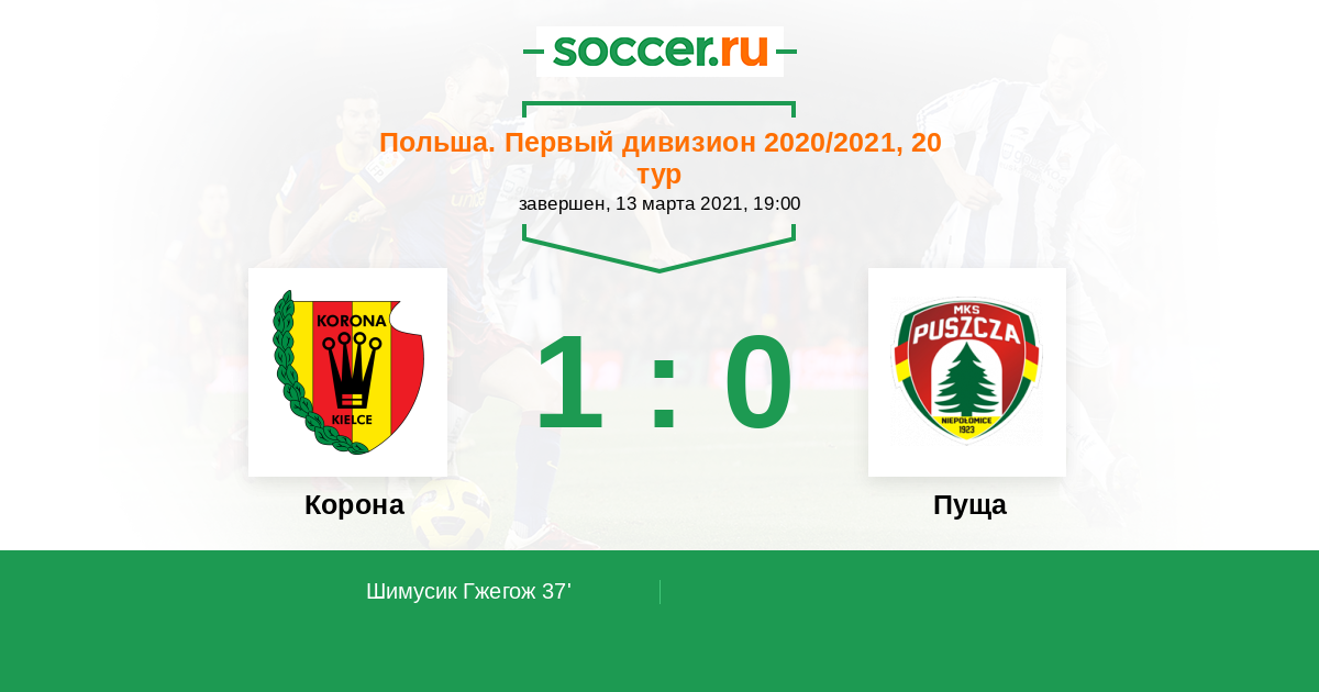 Протокол матча Корона против Пуща