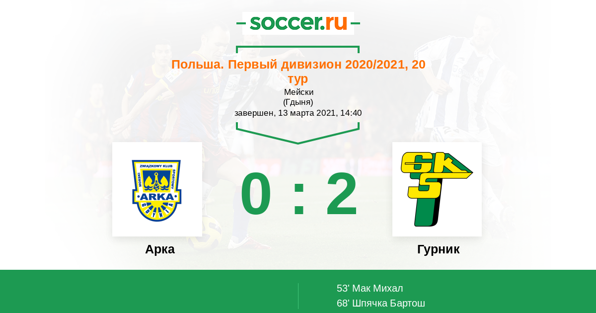 Протокол матча Арка против Гурник