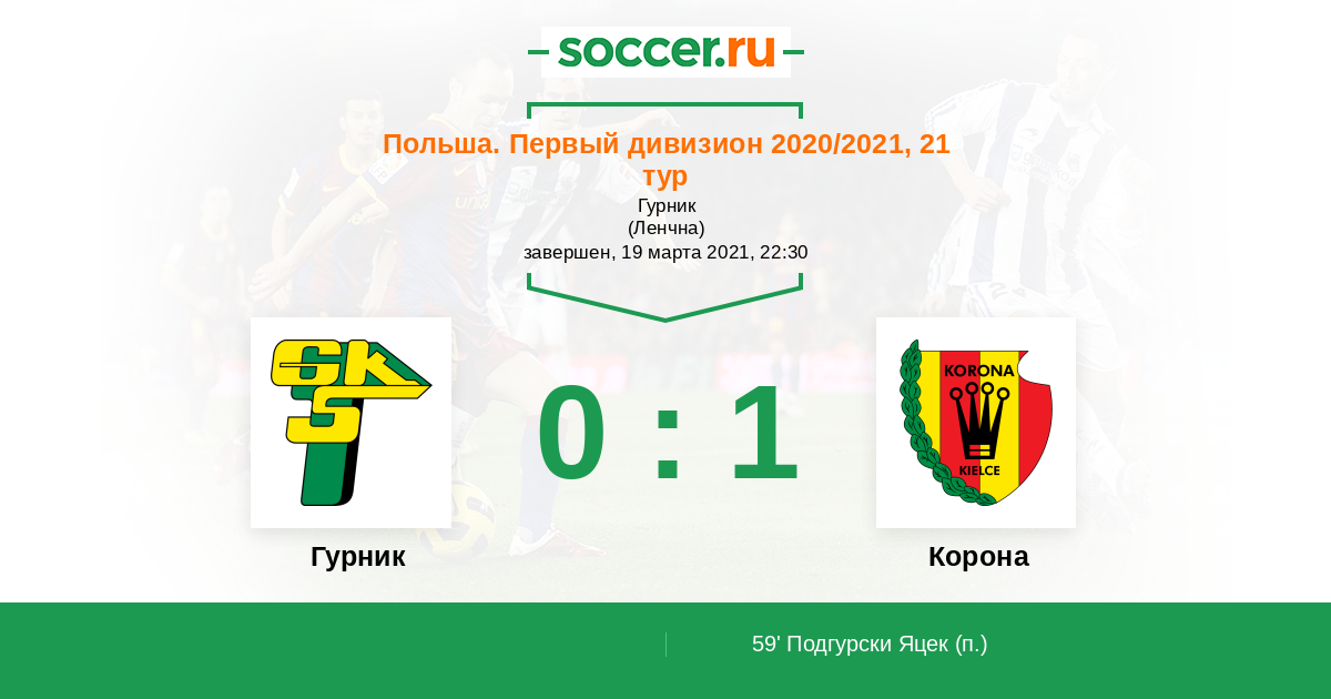Протокол матча Гурник против Корона