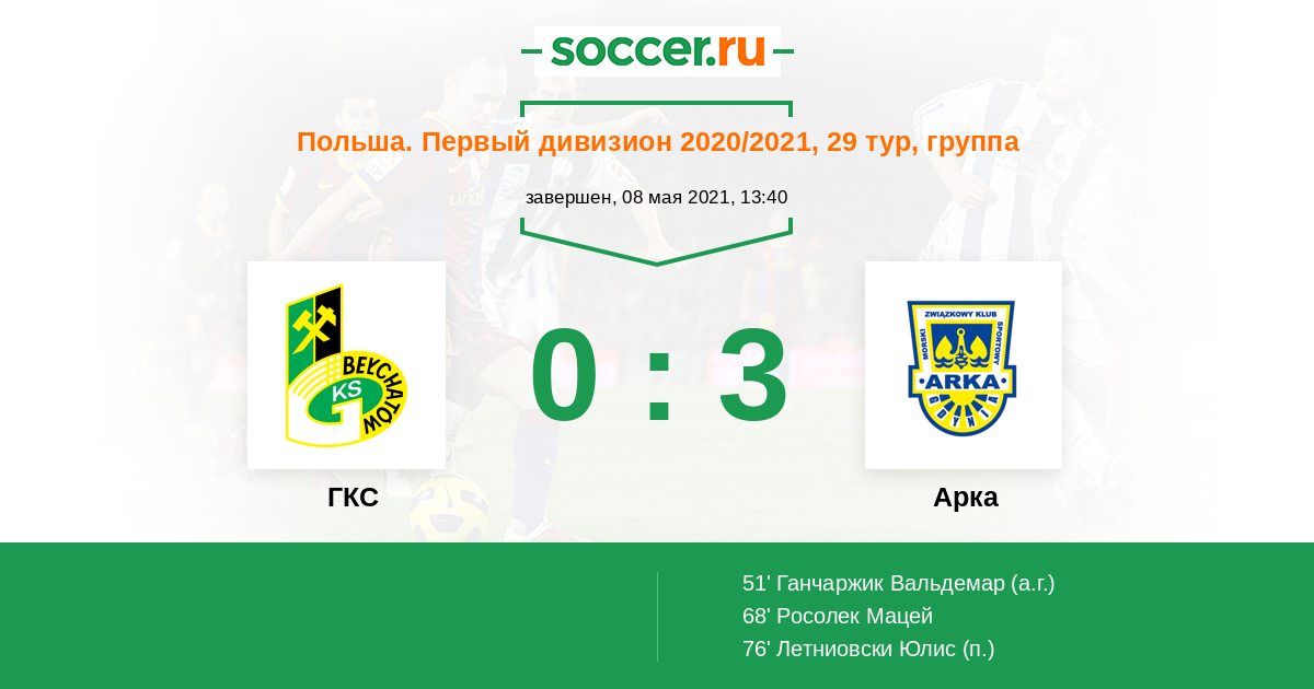 Протокол матча ГКС против Арка