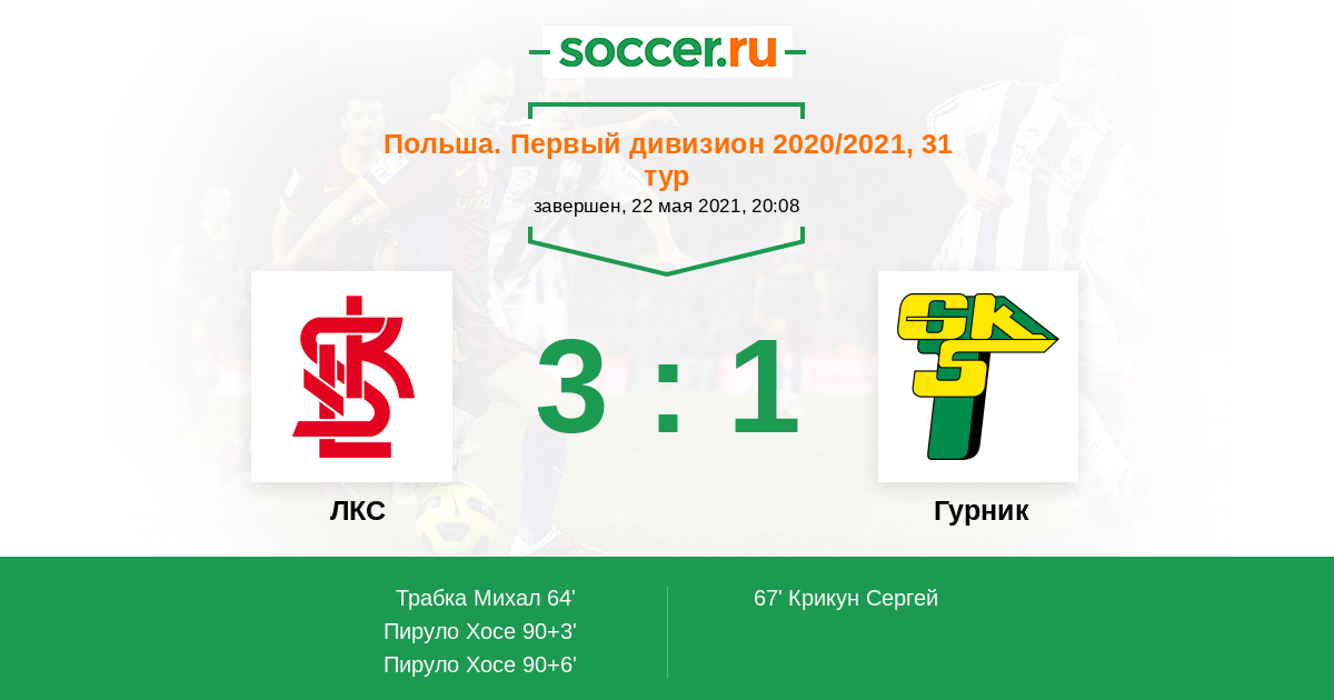 Протокол матча ЛКС против Гурник