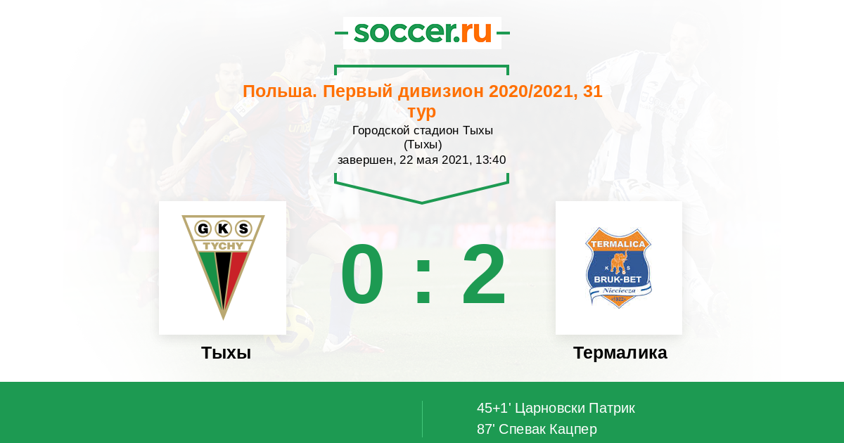 Протокол матча Тыхы против Термалика