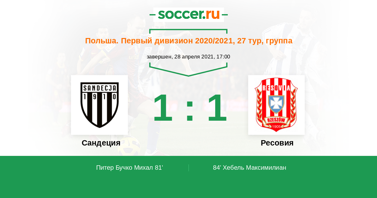 Протокол матча Сандеция против Ресовия