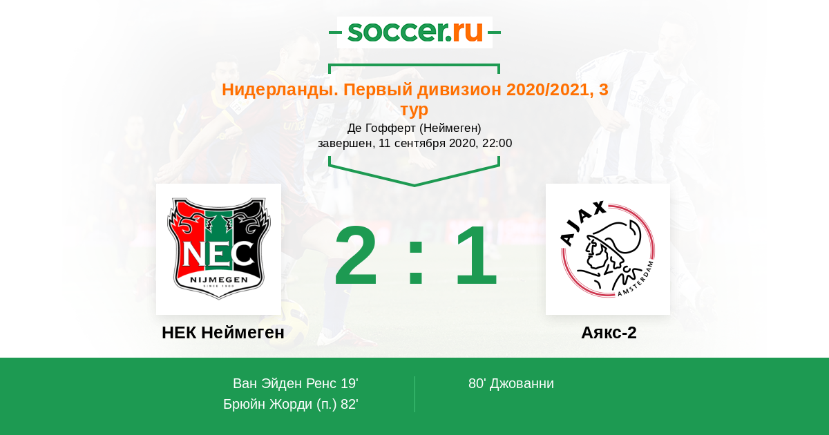 19' (1:0) Ван Эйден Ренс (3) (Брюйн Жорди (6))